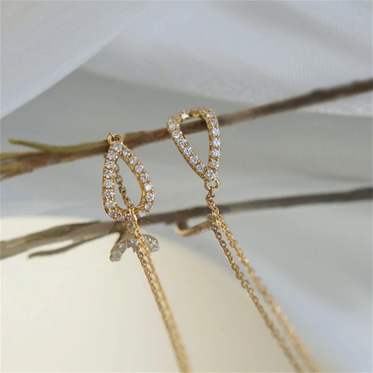 Der obere Water-Drop-Stein ist komplett mit brillanten Zirkonia besetzt und läuft in eine ultra-dünne, elegante Kette aus – pure Bewegung, maximaler Glanz.
